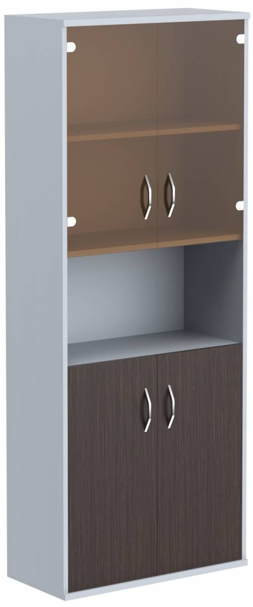 Шкаф комбинированный малыми стеклянными и глухими дверьми СТ-1.4 Венге Магия/Металлик 770*365*1975
